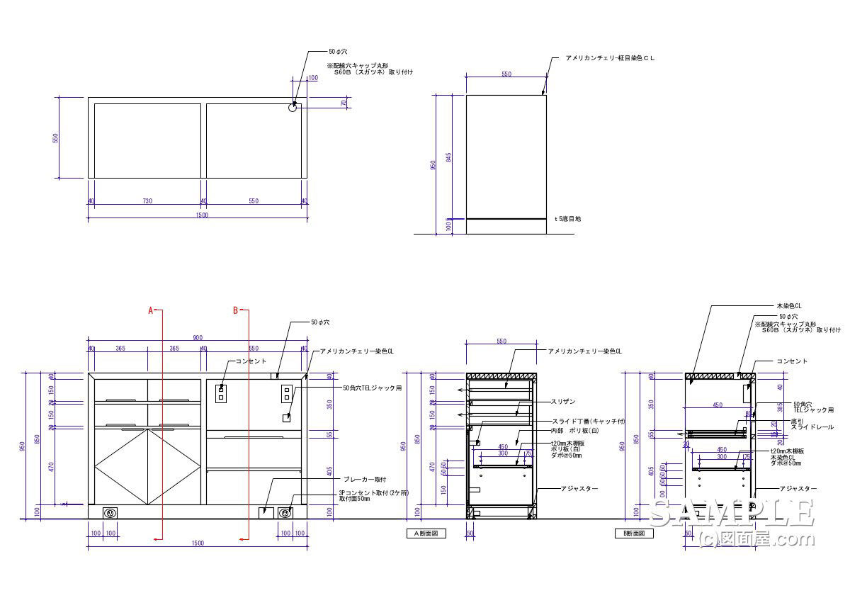 | W1270×D920×H900 図面参照 | 本体:アメリカンチェリー柾目染色CL仕上げ 内部:化粧板仕上げ(白) | |