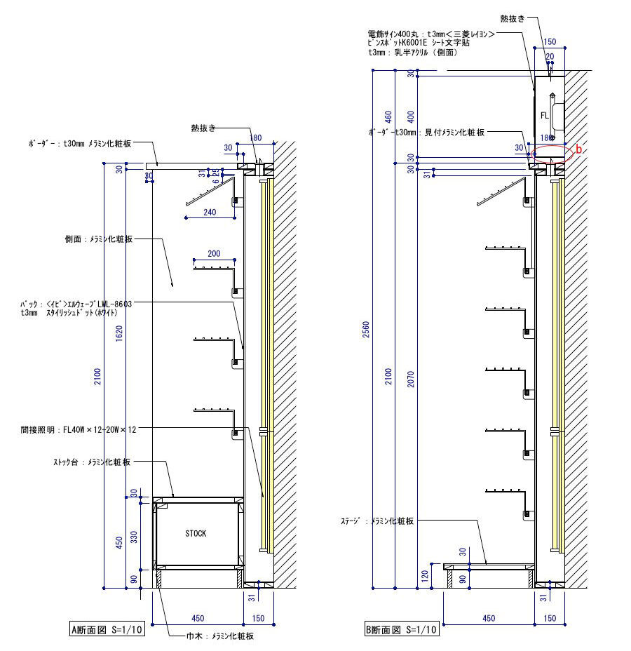 光の設計を意識することで、什器そのものの完成度も一段上がります。最後に、この事例で必要な断面詳細図を添付しておきます。
