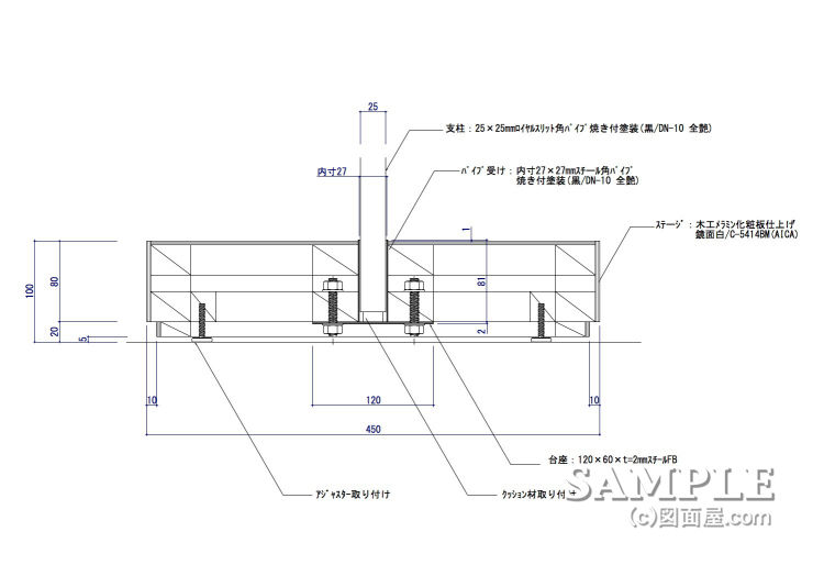 ステージと支柱のジョイント部分の詳細図は続きを読むからご覧下さい。