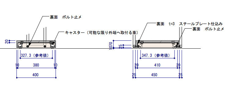 その方法で対処したですが、最初の時点でもっと考えておけば良かったと感じました。決して失敗例とは言いませんが、脚下を固めれば良い姿見什器だと思います。