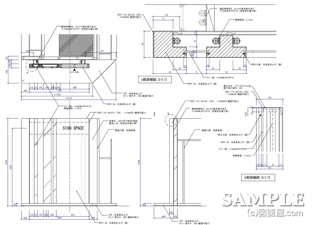 図面屋ま〜では、若き同業者の方々のお役に立てるよう、今まで描き続けてきた図面資料やデザイン資料などをお伝えしております。 ただ、掲載している作図資料はあくまで資料であり、全ての店舗や施工に当てはまるものではありません。ですから、参考程度の資料とお考えください。
