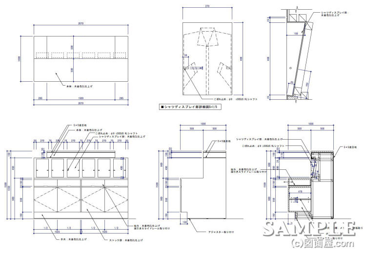 | W2070×D1000×H1500 図面参照 | 本体:木染色CL仕上げ ストック内部:化粧板仕上げ | |