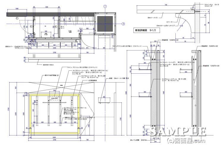 図面屋ま〜では、若き同業者の方々のお役に立てるよう、今まで描き続けてきた図面資料やデザイン資料などをお伝えしております。 ただ、掲載している作図資料はあくまで資料であり、全ての店舗や施工に当てはまるものではありません。ですから、参考程度の資料とお考えください。