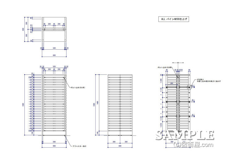 この作図事例はタワー型ディスプレー什器の姿図と断面図です。