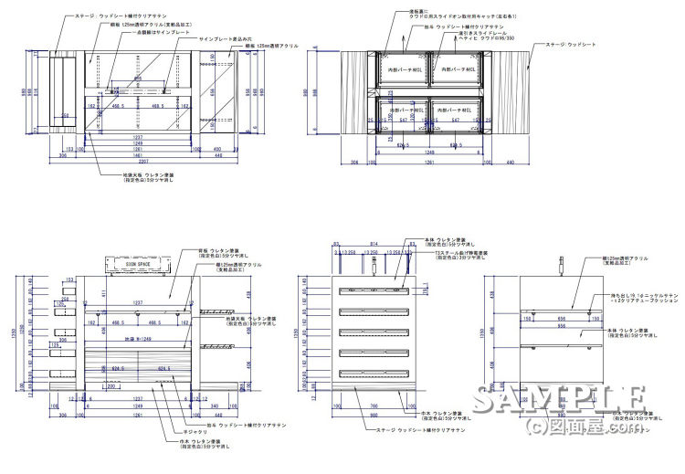 図面屋ま〜では、若き同業者の方々のお役に立てるよう、今まで描き続けてきた図面資料やデザイン資料などをお伝えしております。 ただ、掲載している作図資料はあくまで資料であり、全ての店舗や施工に当てはまるものではありません。ですから、参考程度の資料とお考えください。
