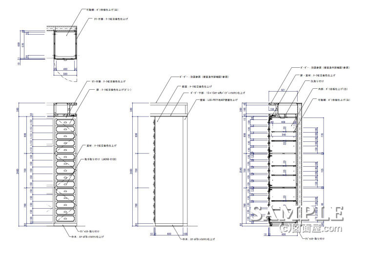 | W500×D631×H2400 図面参照 | 本体:チーク柾目染色仕上げ 内部:化粧板仕上げ | |