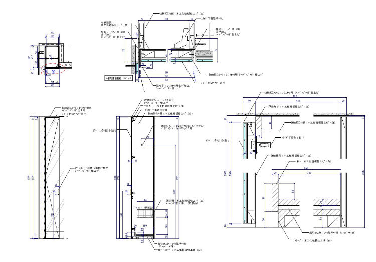 | W300×D497×H2600 図面参照 | 収納BOX:木工化粧板仕上げ 建具:木工化粧板仕上げ+t=5クリアミラー貼り ミラーフレーム:t=3スチールFB シャンパンゴールド仕上げ | |