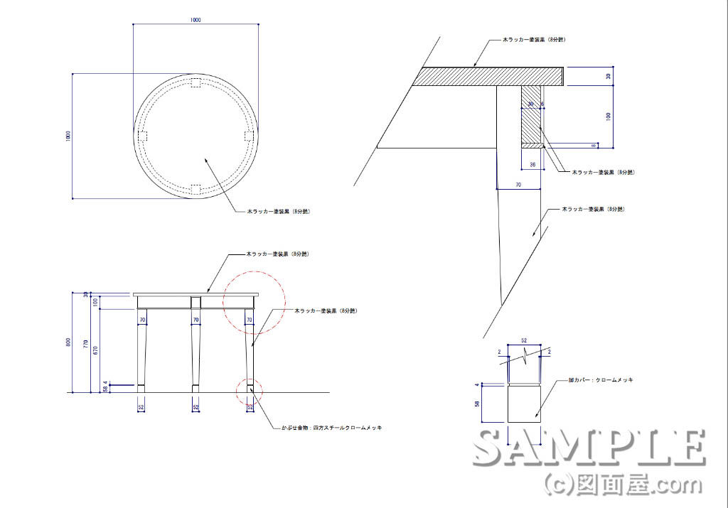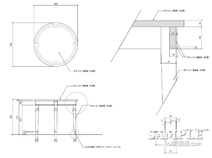 | 1000×1000×800 | 木部:ラッカー塗装仕上げ(8分ツヤ) 金物部:クロームメッキ仕上げ | |