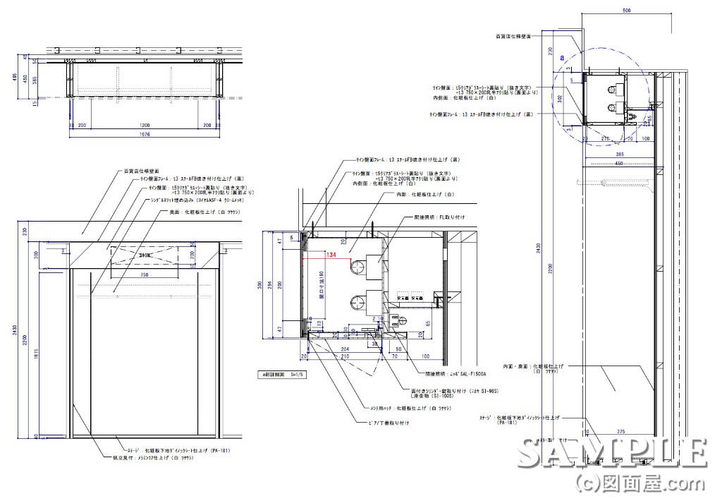 この図面は、以前に管理人さんの教えを受けながら描いた壁面のシステム什器図です。