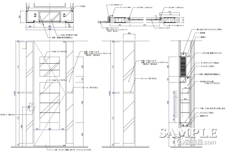 | WxD×Hは、図面参照 | 建具:木下地ラッカー塗装仕上げ SW:t=6mmクリアガラスFIX |
