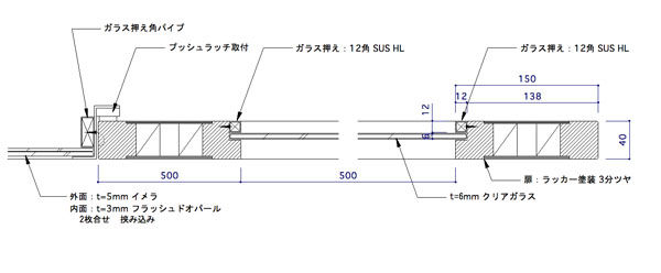 この図面には管理用の錠がついていませんが、最終図面にはクライアントの要望もあって付けました。
