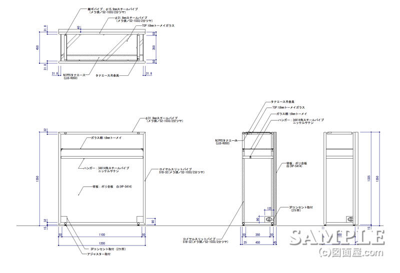 W1200×D450×H1350 | 本体:φ31.8mmスチールパイプ
