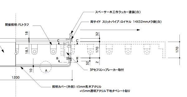 | W1200×D300×H2200 | 本体:木工ラッカー塗装仕上げ+スチールメラ焼き仕上 サイン部:照明カバー(外側):t5mm乳半アクリ+t5mm透明アクリ下地+タペシート貼り | |