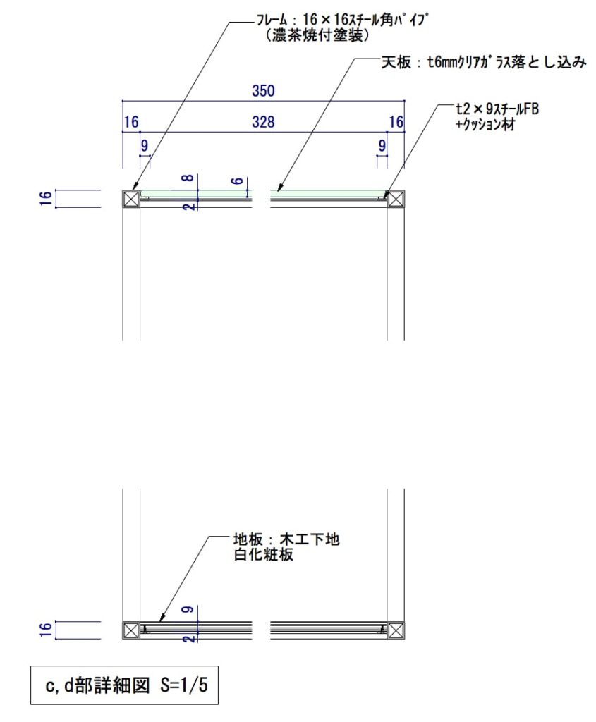 フレームに溶接したFBにてガラスや底板のベニヤを受けている収めとなっています。
