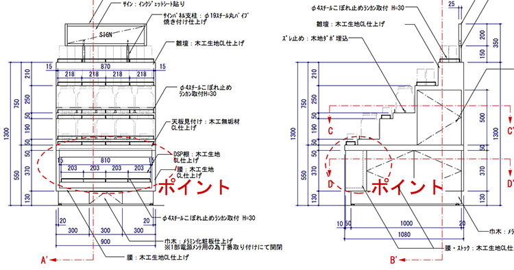 以前、リサーチがてら市内の食品スーパーで見つけた什器ですが、「これはいける!」なんて思い図面にしてみました。