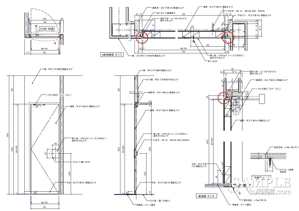 今回の作図事例は、ストックなどに使用されるごく一般的な建具図です。