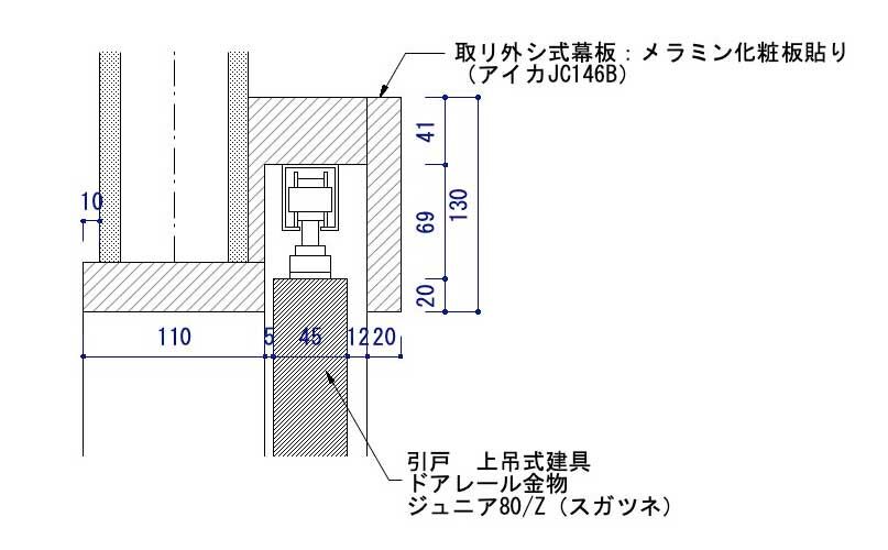 本来は、もう少し詳しく描くのですが、半自動で閉まる引き戸レールについては、