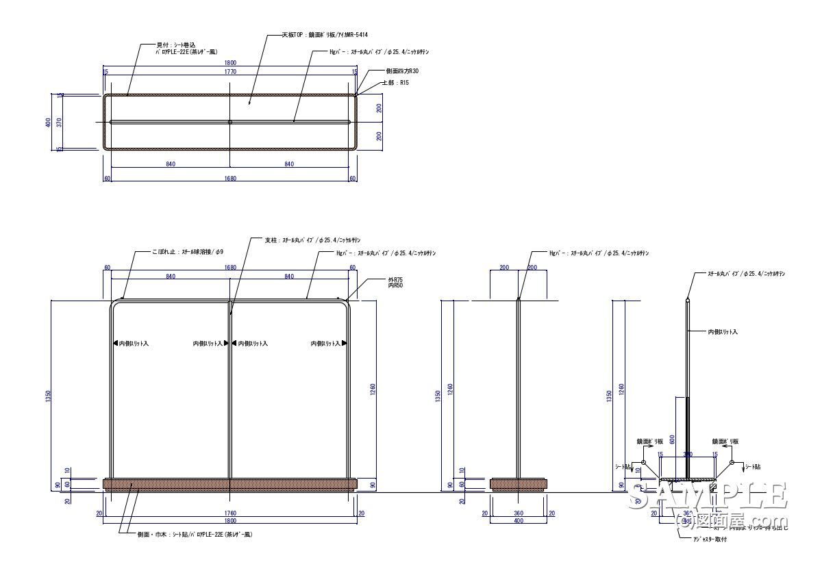 W1800×D400×H1350 図面参照 | 支柱・HGバー:スチールパイプニッケルサテン仕上げ ステージ:木工下地シート貼り |