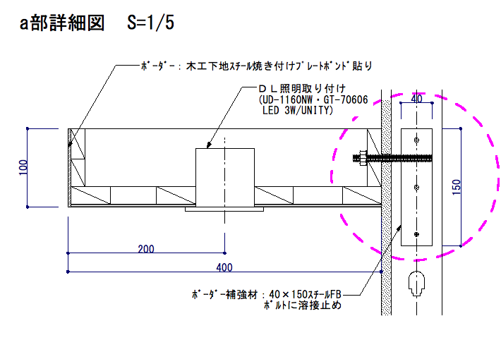 この場合は壁面に金物の補強材を入れていますが、もっと大きなボーダーで重量があるならば、天井から吊りパイプという手もあります。