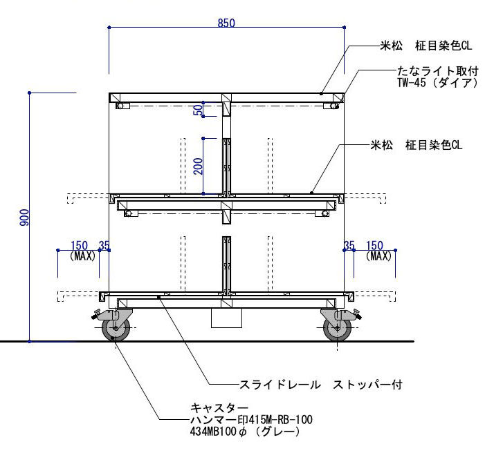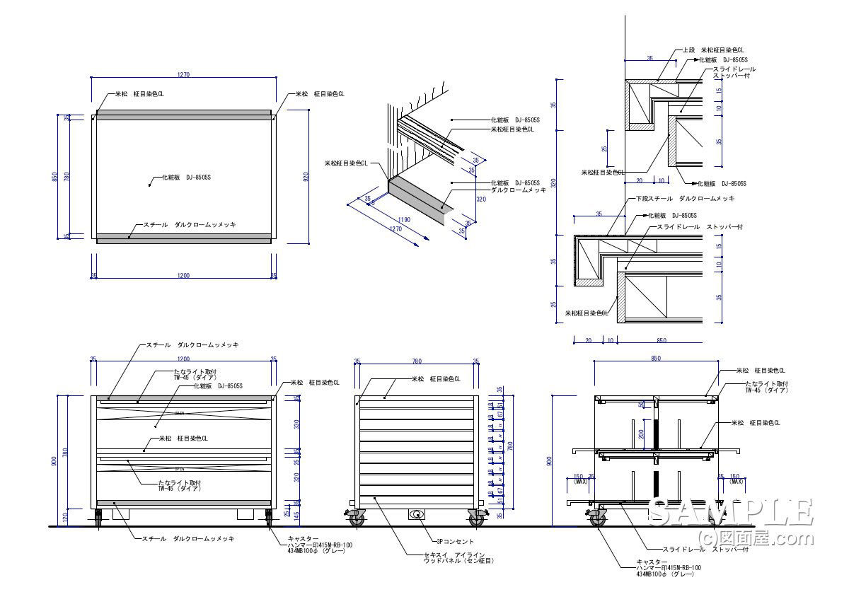 以下は、この什器の断面詳細図ですので、重要視してください。