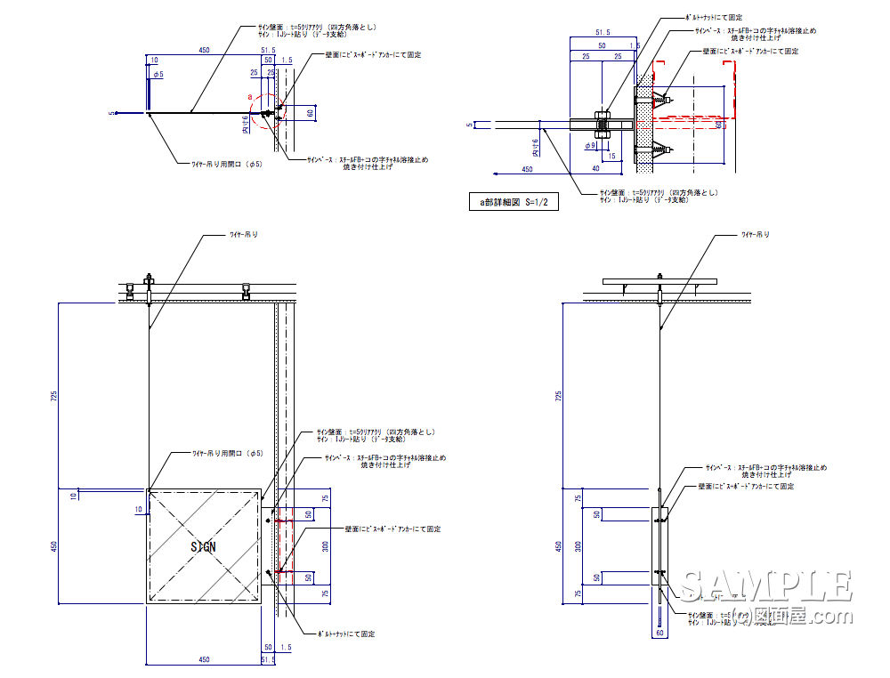 平面詳細図をご覧頂いていますが、先ほど話したインロー式のことですが、この場合はサイン板(アクリル板)の差し込み程度なので正式にインロー式とはいえないかもしれません。