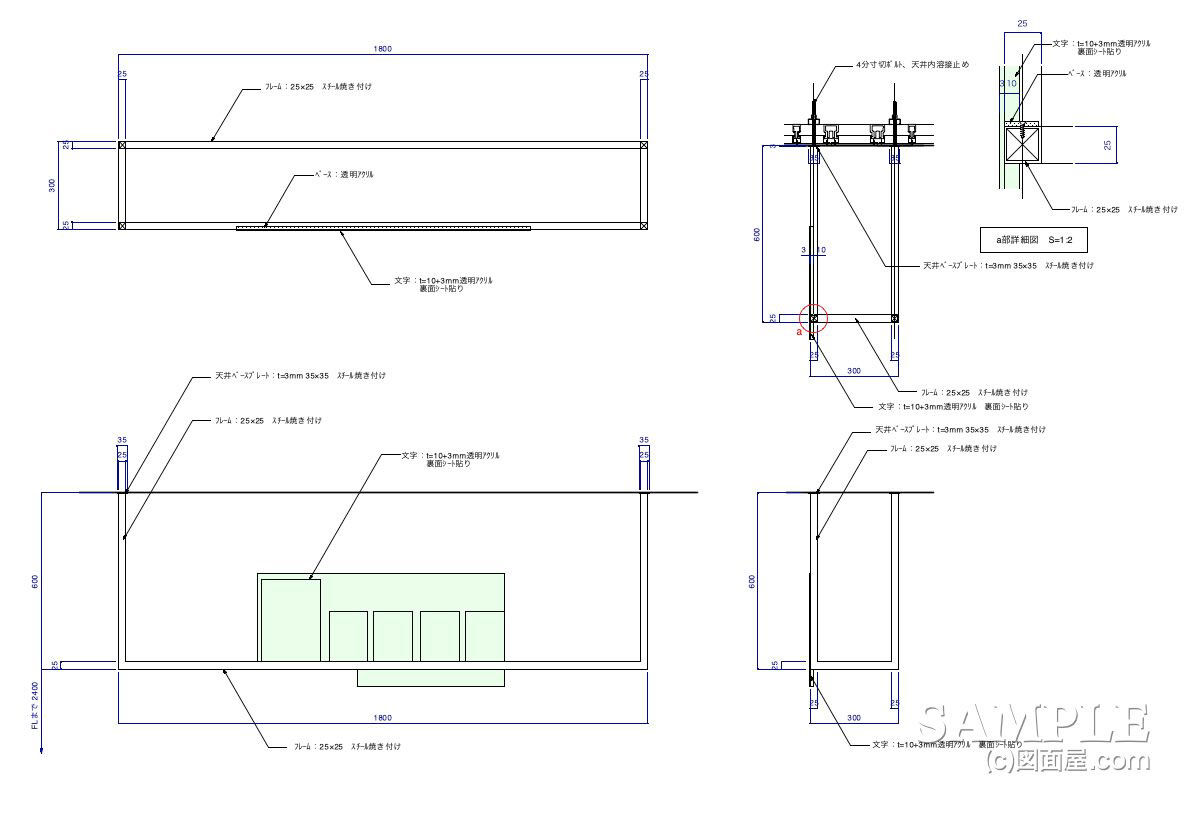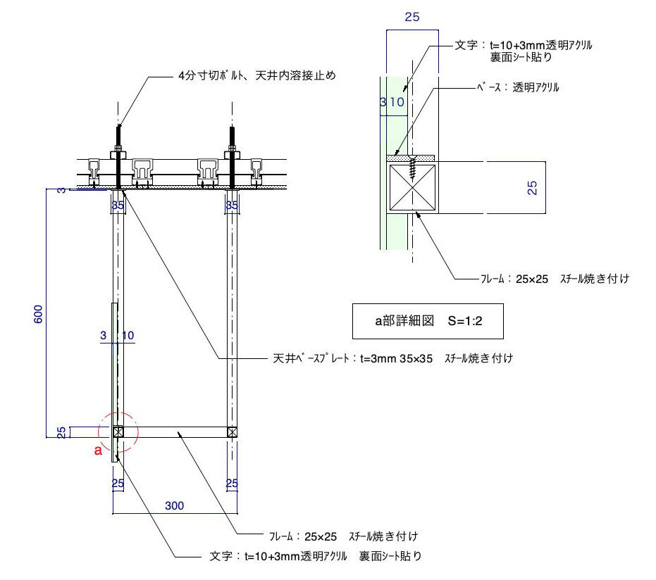 | 金物部:スチール焼き付け仕上げ サイン:透明アクリ+シート貼り |