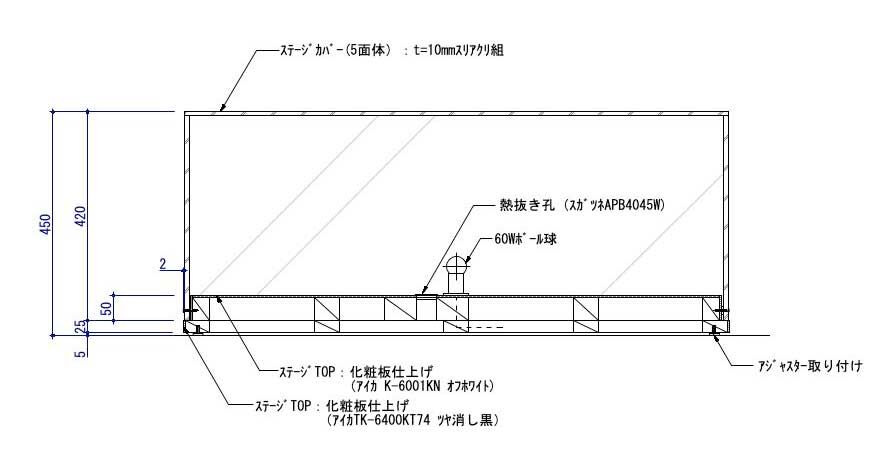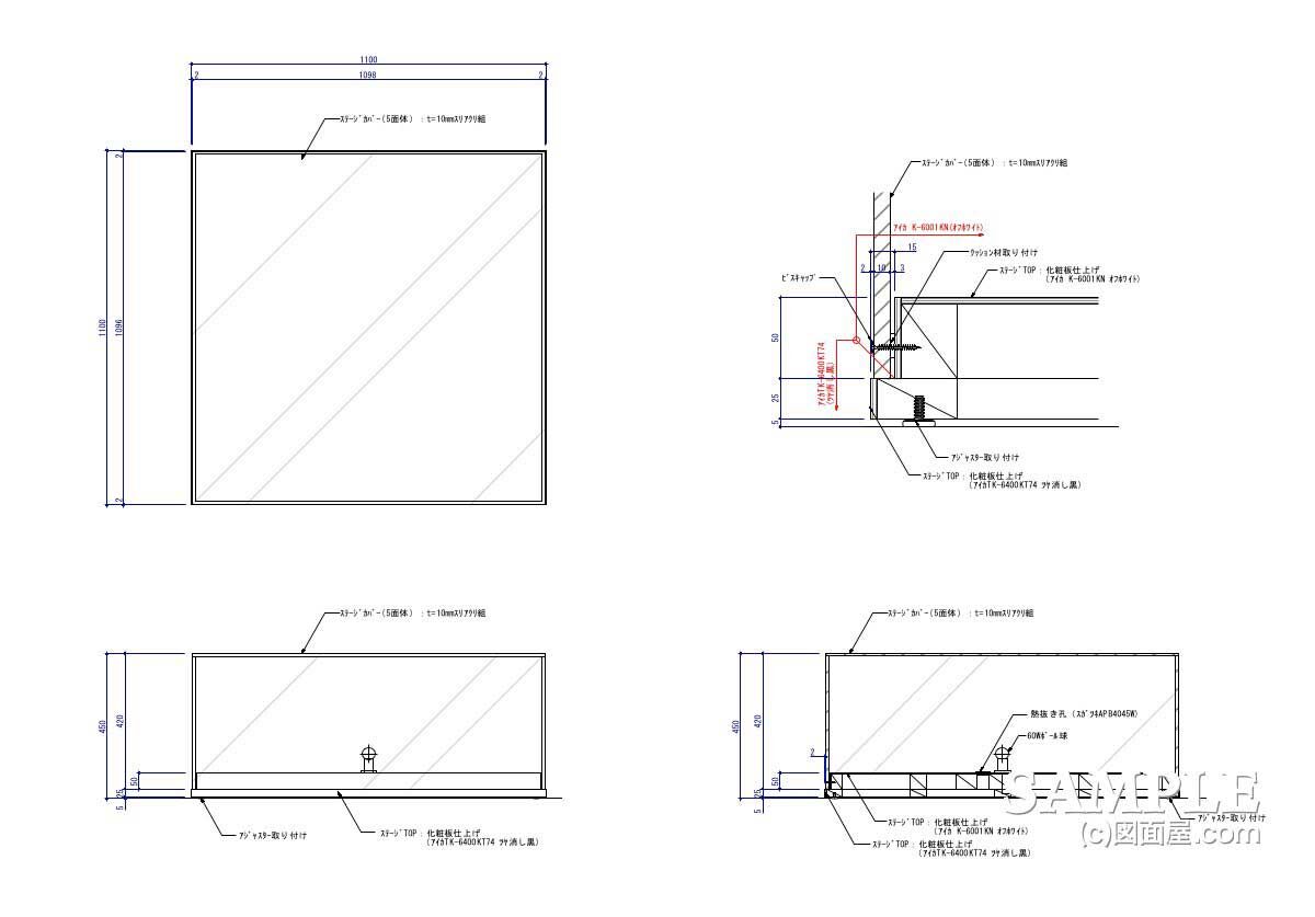 | W1100×D1100×H450 図面参照 | TOP:t=10mmスリアクリ5面体 ステージ:木工化粧板仕上げ | |