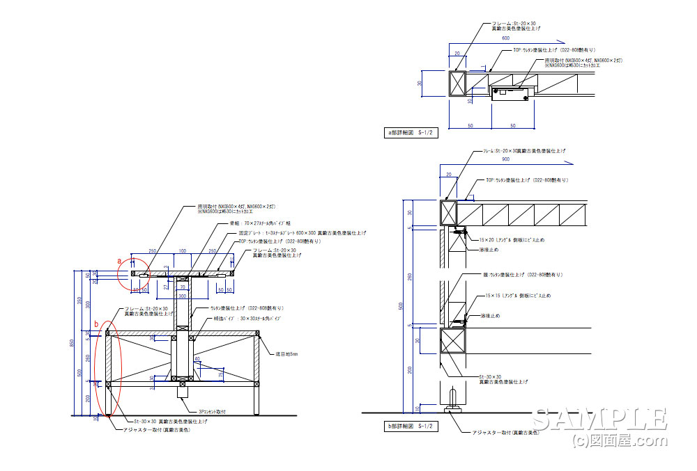 断面図を見れば、先ほど説明したスチール角パイプが確認されます。