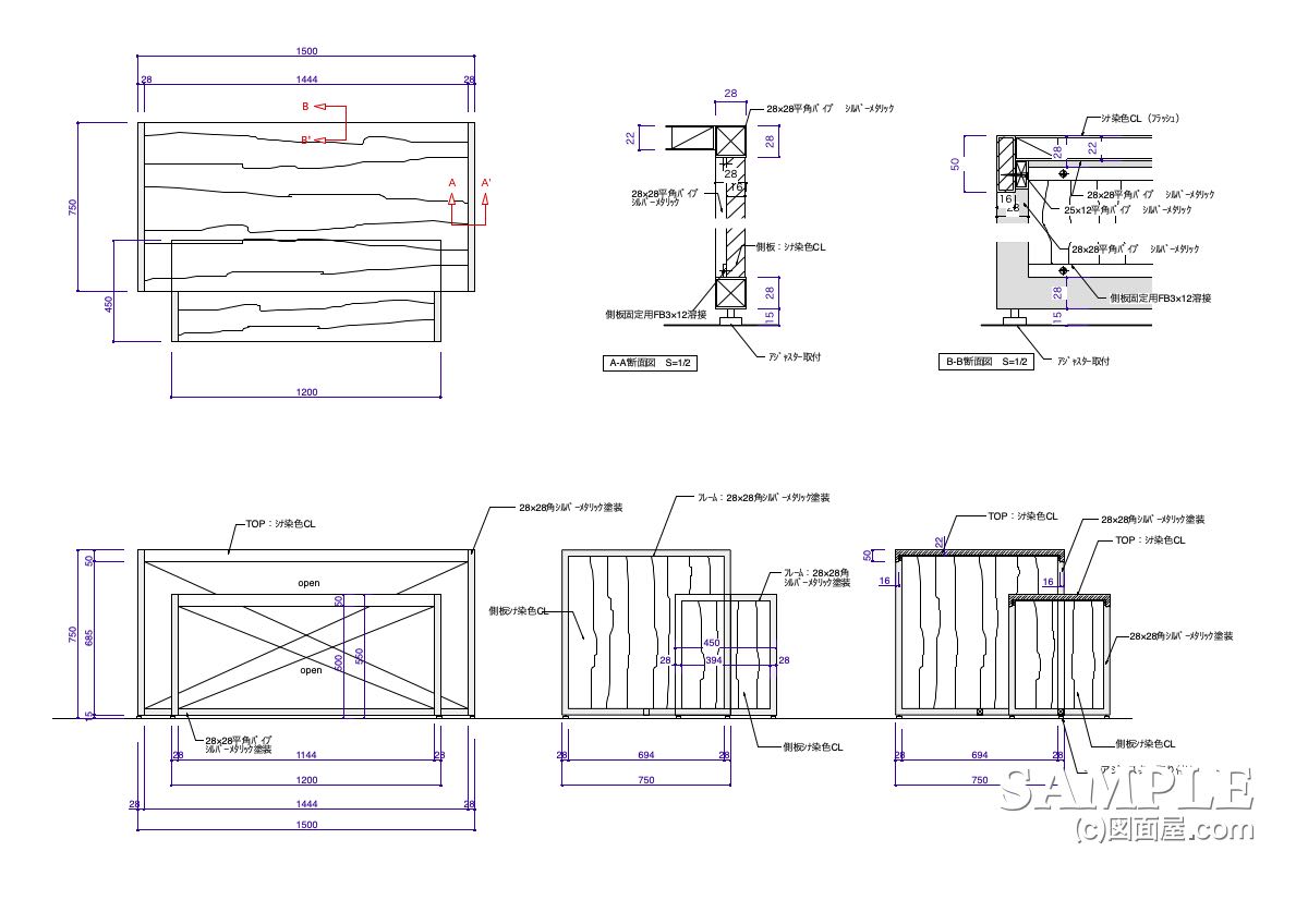 今回の什器で大切な納めは上記に箇所です。