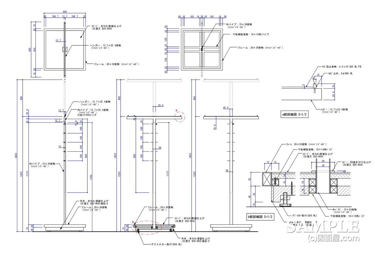 | W450×D600×H1250 〜1650 | 本体:フレーム:20×30金物 (シャンパンゴールド) ステージ:木ウレタン塗装仕上げ (日塗工 D25-90A) | |